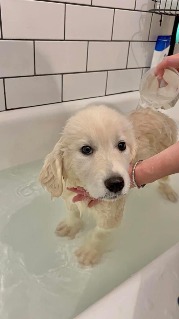 - Under 8 weeks: ❌ Do not give a full shower. Use a warm, damp cloth instead.